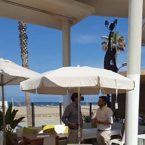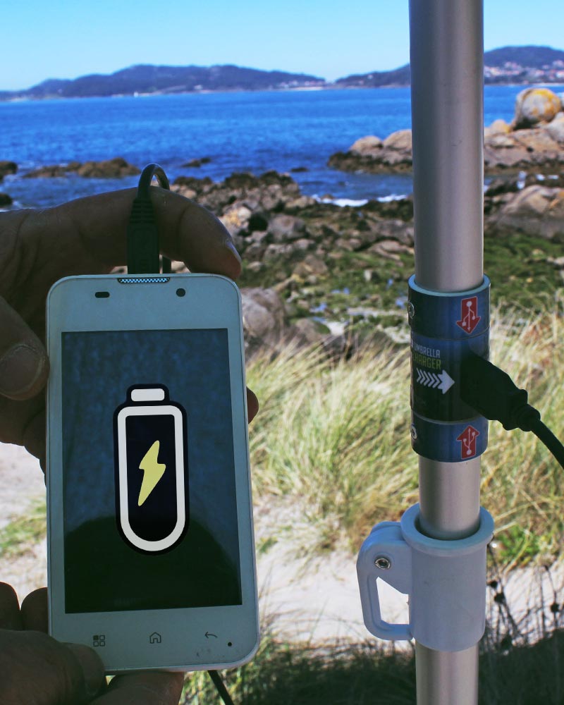 Gracias a esta sombrilla clientes de hostelería ya pueden cargar el teléfono móvil, cámara digital, tablet o portátil en terrazas mientras disfrutan del sol. Gracias a esta sombrilla asistentes a diferentes eventos: festivales, competiciones al aire libre… ya están cargando también sus dispositivos electrónicos. Gracias a esta sombrilla clientes de diferentes marcas y negocios los tienen siempre presentes mientras disfrutan del sol en playa, monte o sus terrazas.